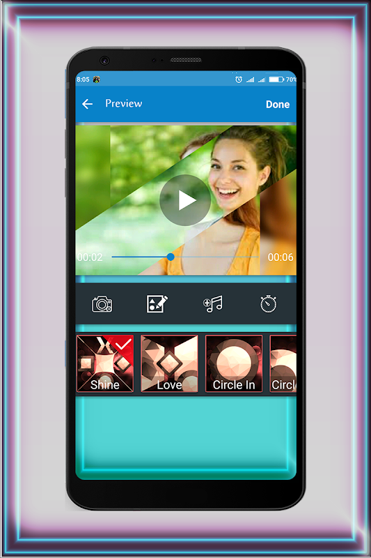 Love Slideshow Maker With Music est l'un des meilleurs éditeurs de vidéo, de création de diaporamas et d'applications de montage de films dans Android Store. Avec cette application, vous pouvez le plus simple moyen de créer, modifier votre histoire vidéo à partir de photos de la galerie . Nous essayons de construire un éditeur vidéo tout-en-un comme: Texte, Musique, Thème, Effets, Cadres ... Tout ce dont vous avez besoin pour faire une vidéo génial