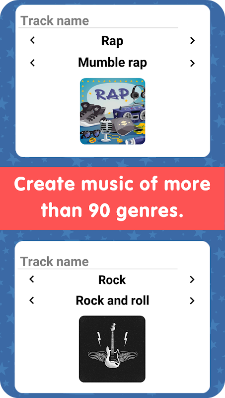 - The game has 12 different genres and up to 90 subgenres. For instance, you can choose not just rock, but it's subgenre - metal, grunge or indie rock. Choose not just rap, but old school, new school or grime. Create solo tracks or albums, or co-release with your idols. Besides creating music, you can also create your own music videos!