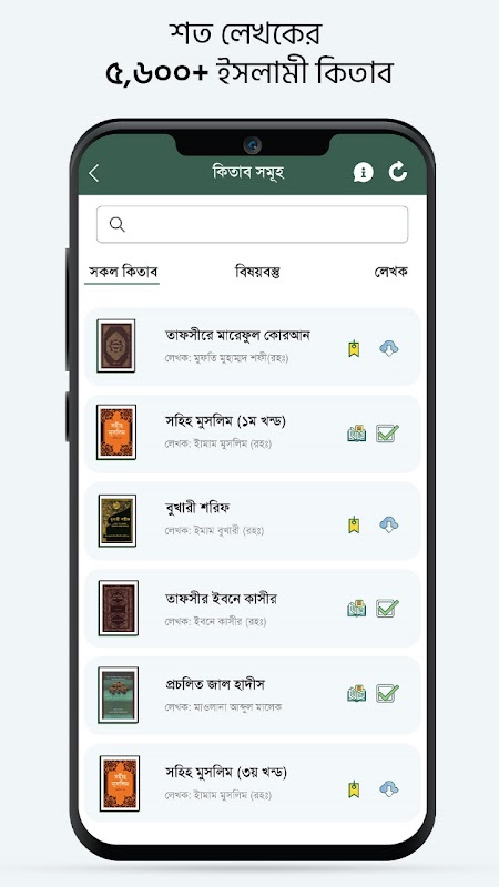 - ডাউনলোডকৃত কিতাবে সার্চ সংযুক্তিকরণ এবং সর্বশেষ কিতাব দেখানোর ব্যবস্থা করা হয়েছে।