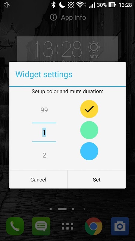 Simple widget tourne téléphone en mode silencieux pendant un certain temps.