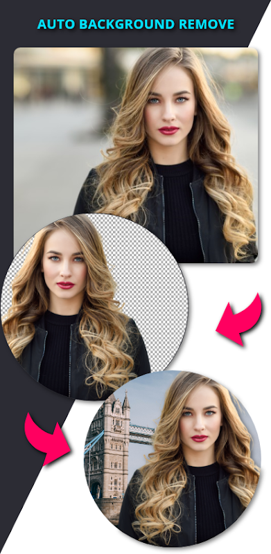 L'application d'éditeur de photos rapide vous permet de supprimer l'arrière-plan de la photo à l'aide de l'outil de recadrage automatique. Il vous suffit de choisir l'image de la galerie, de supprimer l'arrière-plan de la photo et d'ajouter un arrière-plan 3D à votre photo à l'aide du changeur d'arrière-plan automatique ou de l'application d'éditeur de photos