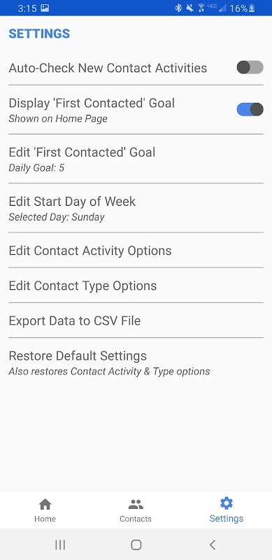 - Contact Tracker: conserve une liste enregistrée des activités planifiées et des notes enregistrées pour chaque contact