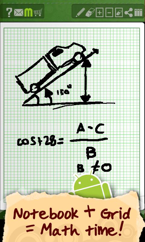 * Feel the real look of a notebook by choosing your page layout such as blank, lined or mathematics styled.
