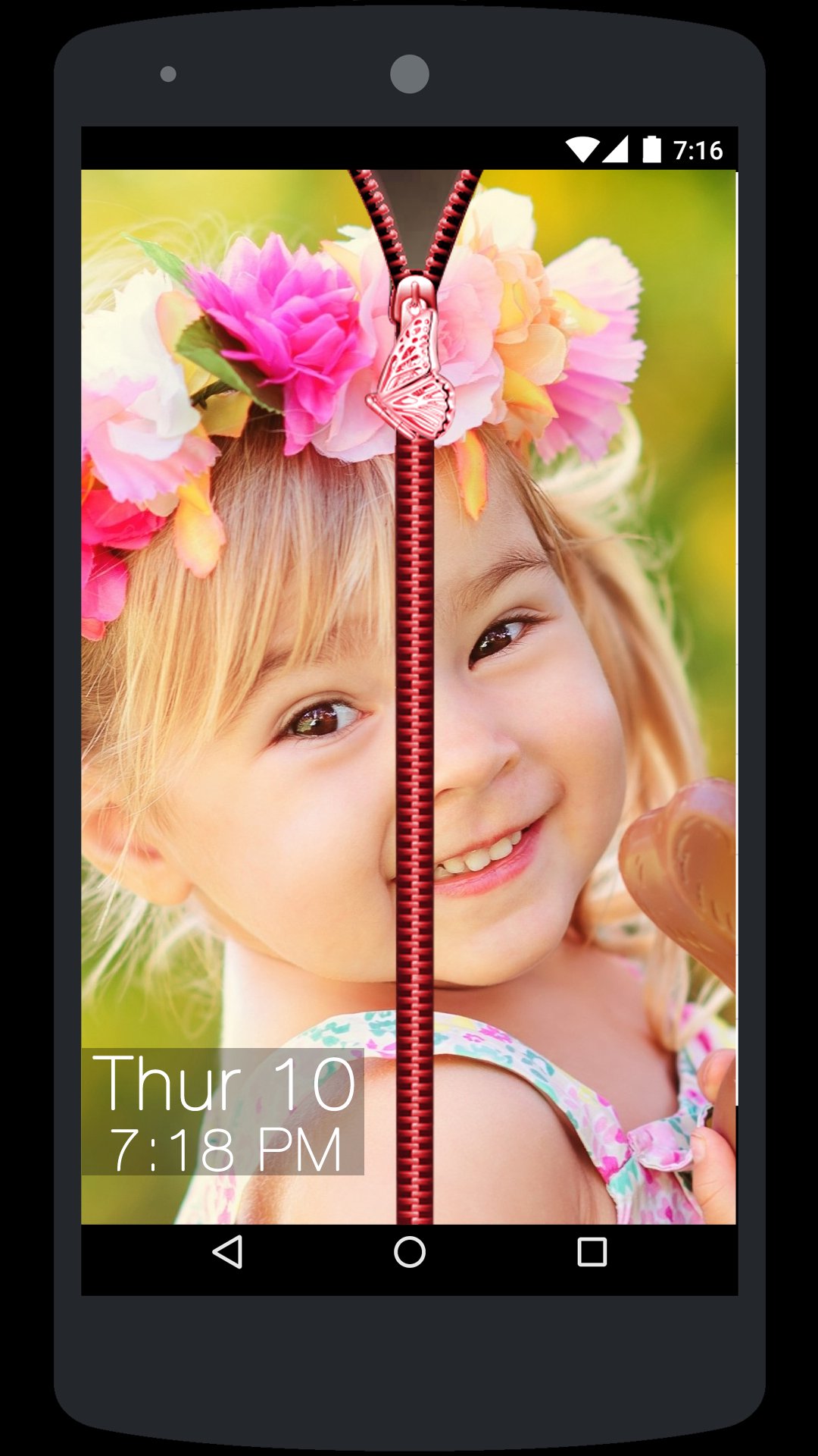• Now whenever you lock the phone and try to open it then you will see a Photo background Zip Lock Screen so you need to hold the Zip and drag it down to unlock the phone.