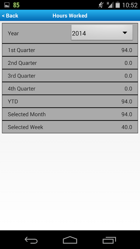 - Heures travaillées calculées pour chaque trimestre, année à ce jour, mois sélectionné, semaine sélectionnée et heures de carrière.