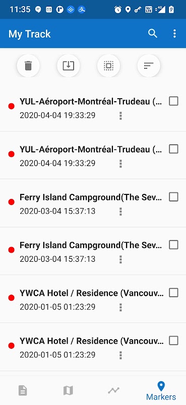 5.4 Les marqueurs peuvent être partagés ou exportés dans un itinéraire.