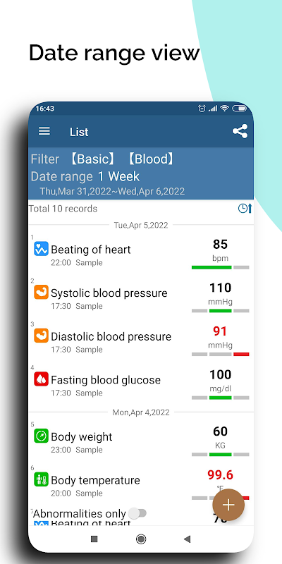 ★ Types personnalisés : taille, poids, vision, pouls, tension artérielle, glycémie... etc.