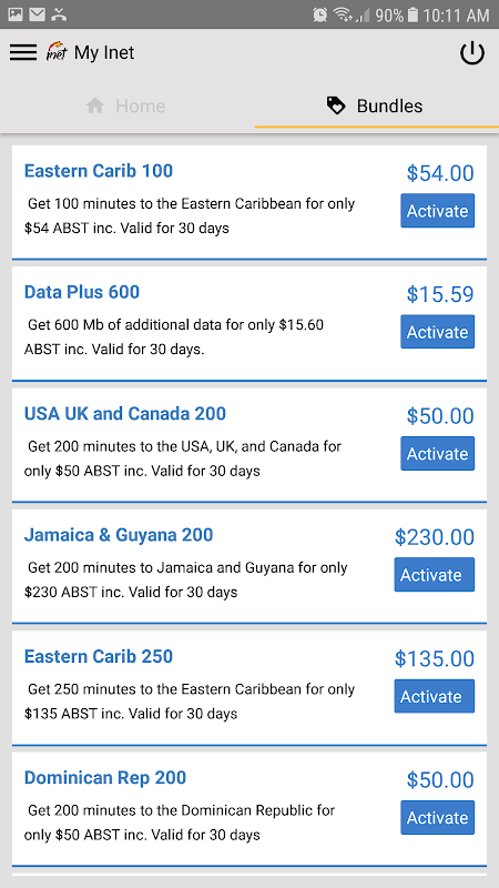 Avec l'application MyInet, vous pouvez vérifier vos soldes et activer différents plans. Vous avez également la possibilité de visualiser et de payer les factures.