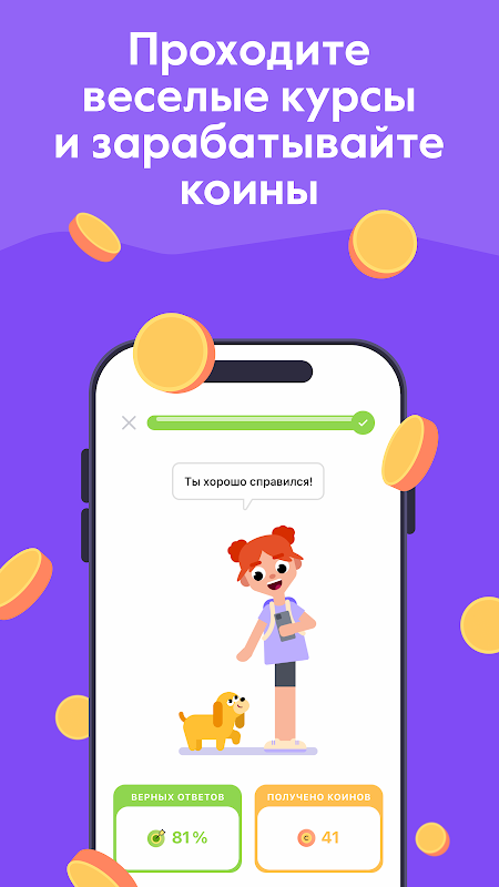 La formation, c’est bien, mais où en serions-nous sans récompenses ? Notre application dispose d'une tirelire et d'une monnaie interne - des pièces de monnaie. Les étudiants accumulent des pièces qu’ils peuvent ensuite échanger contre un prix de valeur. Par exemple, aller au cinéma avec des amis, un jouet ou un nouveau smartphone.