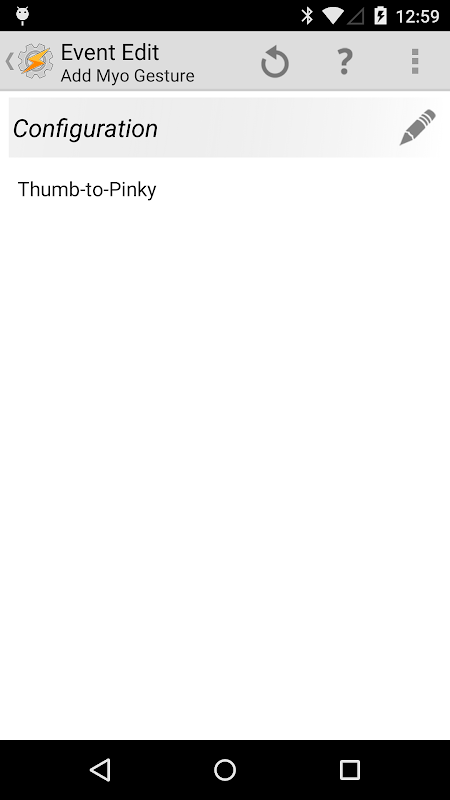 To use, open Tasker and create a new profile with the 'First Context' being an Event. A popup will ask you to select an 'Event Category'. Select Plugin -> Add Myo Gesture.