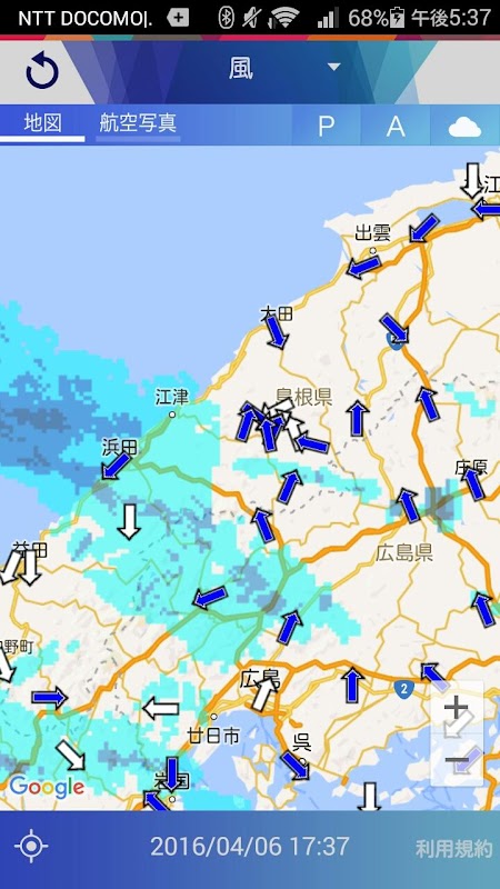 Les valeurs observées de « POTEKA » sont indiquées par des cercles ou des flèches, et les éléments météorologiques (température, humidité, pression atmosphérique, précipitations, vitesse du vent) observés par des capteurs certifiés par l'Agence météorologique japonaise sont disponibles pour les utilisateurs payants du service du point d'observation. Les observations sont publiées avec la permission de .