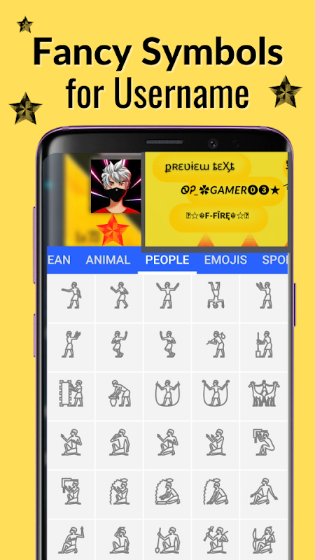 You can distinguish yourself from other players in the game with this font-changing app. It is a text generator with fancy symbols that can change your nickname with a fancy username with cools fonts and font generator. Use of this game name generator is free and offline.