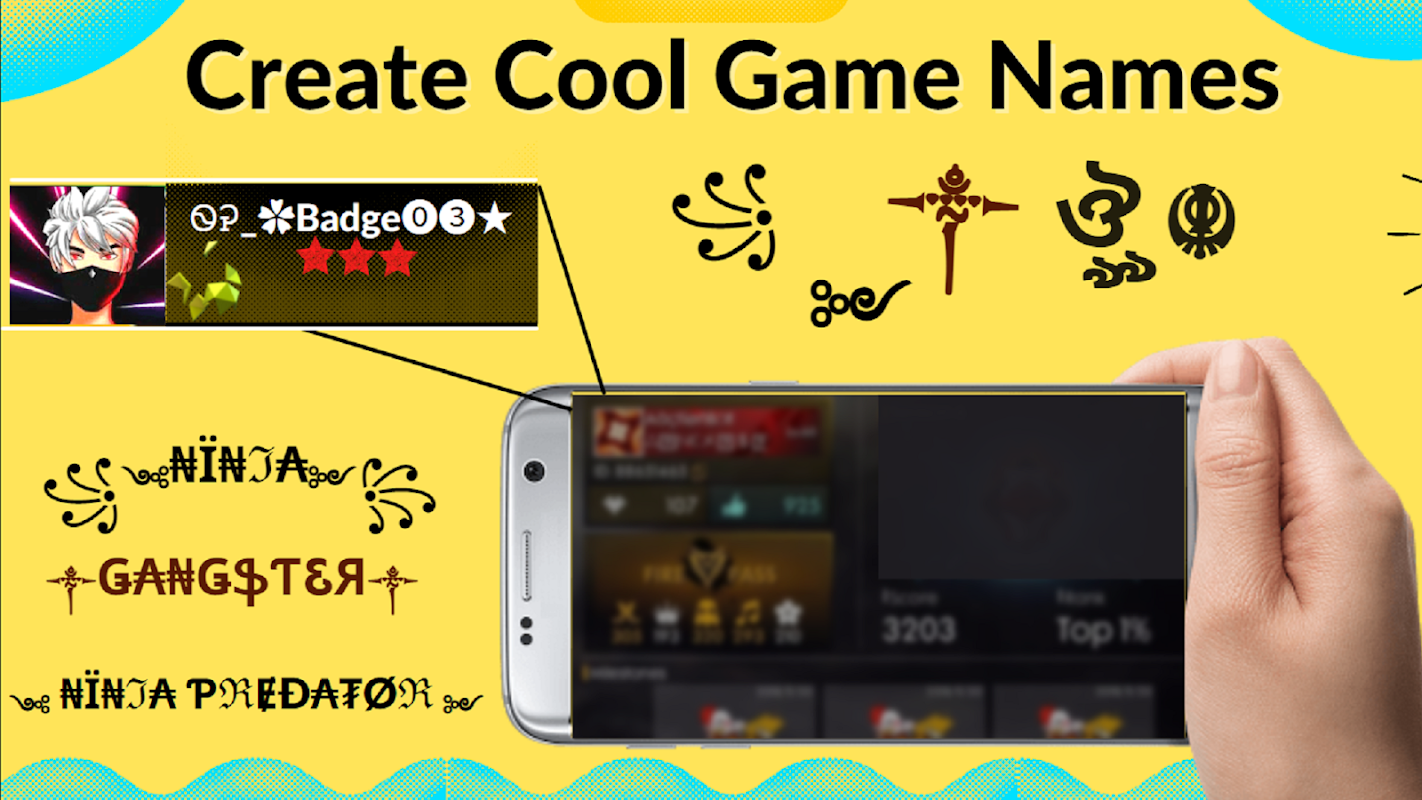 Customize names to make them stylish with text codes, art, symbols for your favorite games which can be used by all. If you are a pro ff player than you should choose your nickname very fancy so that your friends will impress with your game fancy name. Create different gamer tags or usernames every time you play, using interesting gamer rare fonts and symbols. There are many rare fonts with cool symbols to make nicks with this stylish name editor app. You can also use this characters symbols generator to create different nicknames for every game sessions for your games or social networks. Create nicknames for game and have fun.