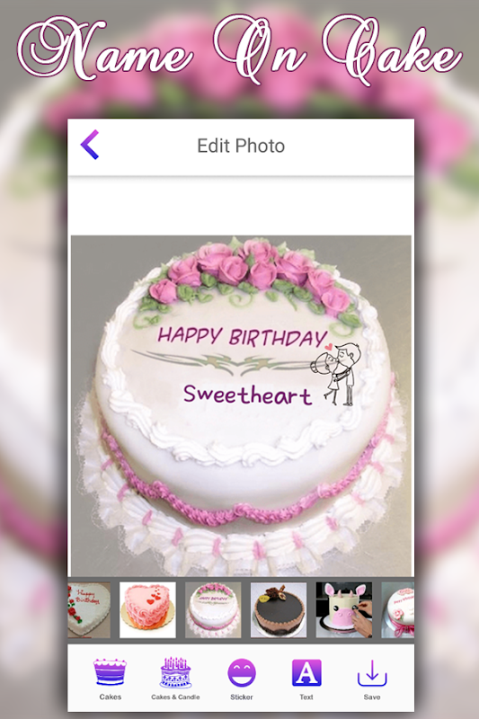 This application is specially designed for Name Birthday wishes. Write your name on birthday cakes, wedding cakes, anniversary cakes wish cards, wishes and many more pictures.