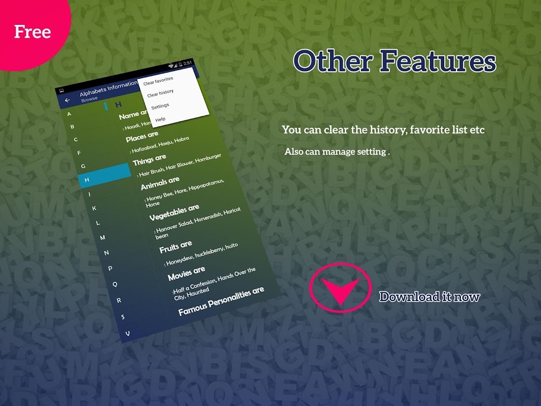 Dans cette application, vous pouvez trouver les noms par les alphabets, c'est-à-dire le nom, le lieu, les choses, etc.