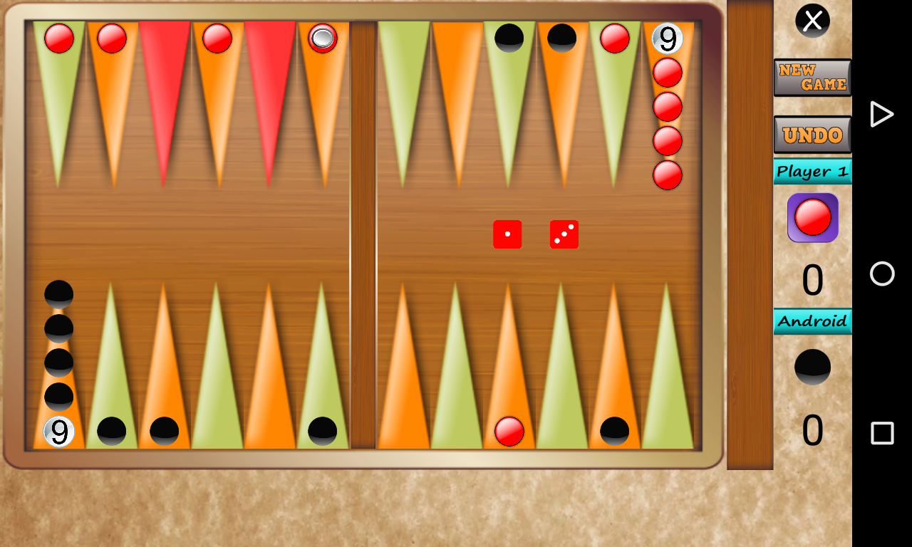 Play the free android challenging brain Narde - long Backgammon game for free now against android, another player !