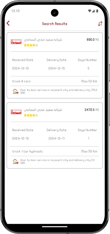 • L'application vous propose un service spécialisé dans le transport de véhicules à différents prix.