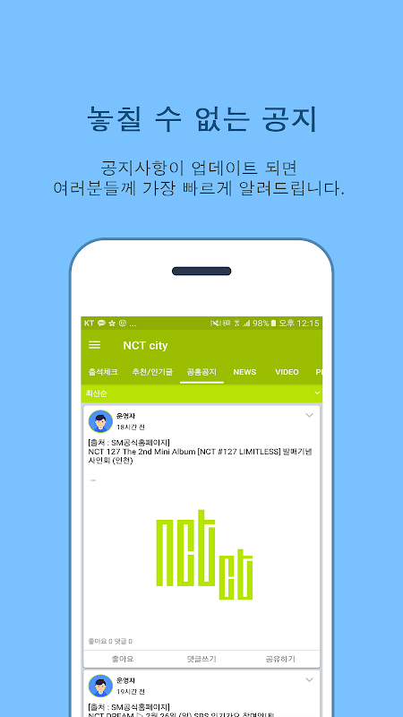 NCT의 공지,스케줄,페이스북,각종 팬페이지, 에스엠 공식 사이트 등을 확인해 보아요