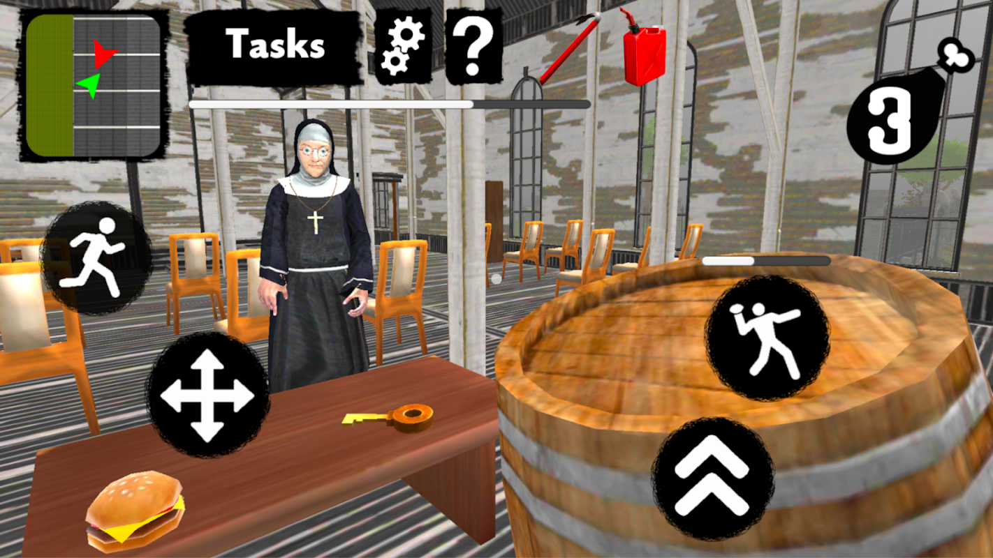 Explore the huge church house and don’t get caught. Hide from the nun neighbor and escape from her. Reveal her terrible evil secret! Enter the building and complete the different seek & hide missions.
