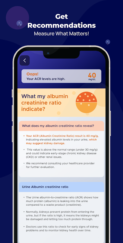 Transformez la façon dont vous surveillez votre santé rénale grâce à notre application innovante qui fournit des résultats de qualité laboratoire en seulement 30 secondes, le tout dans le confort de votre maison.