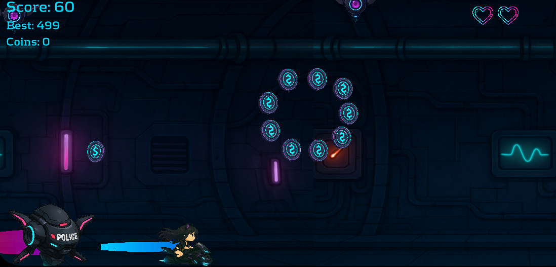 Plongez dans un univers cyberpunk flamboyant avec Neon Valkyrie, un endless runner 2D ultra-rapide aux graphismes animés saisissants et à la bande-son synthwave électrisante. Incarnez la Valkyrie, mi-hacker, mi-guerrière, en mission pour échapper au système et percer les secrets de la ville de néon.