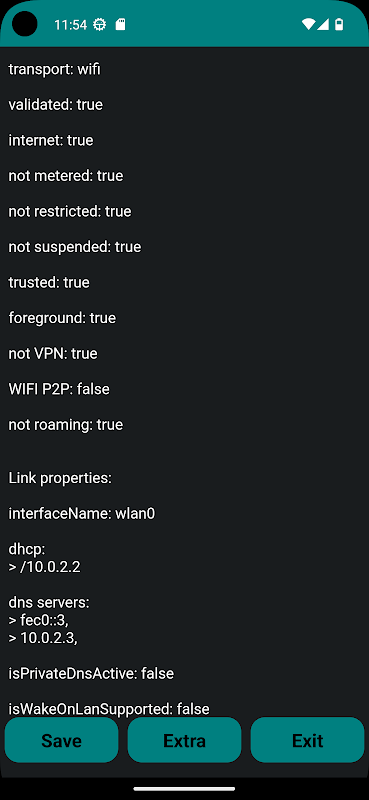 L'application affiche des informations sur la configuration actuelle du réseau.
