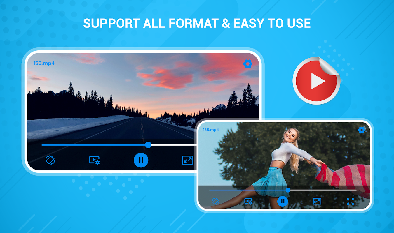 Support ALL video formats, 4K & HD, private folder, embedded video player