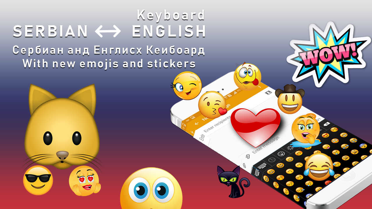 ⭐️ Serbian Keyboard has more than 500 emoji, stickers and cute emoticons.