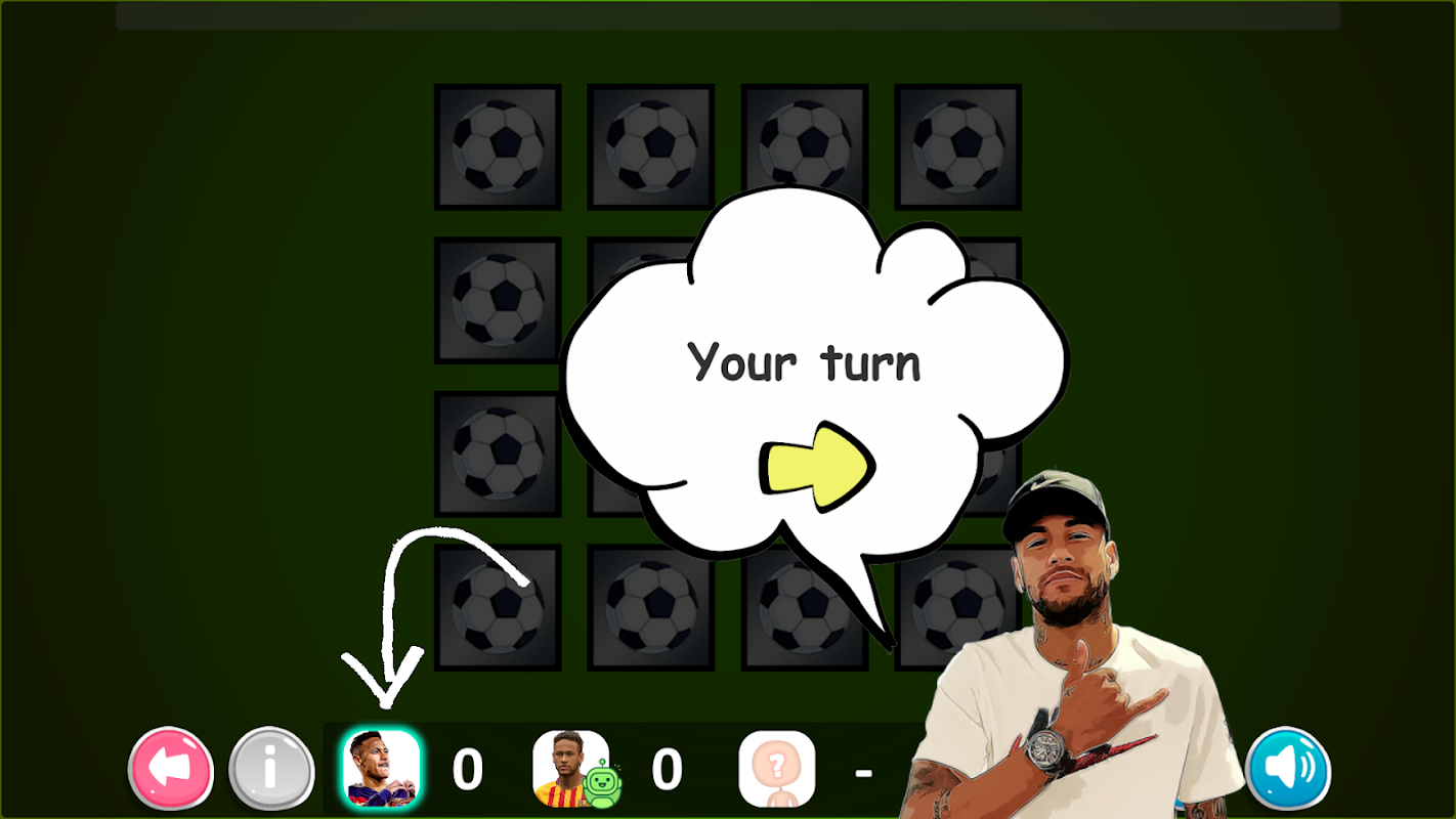 Comme dans nos précédents jeux de mémoire, trois modes de jeu sont disponibles : « Jeu standard », où vous devez collecter des cartes identiques de Neymar, « Défi », où vous devez mémoriser le plus de paires de cartes possible dans le temps imparti, et « Compétition », où le gagnant est désigné après plusieurs tours. Chaque mode de jeu est accompagné d'un tutoriel.