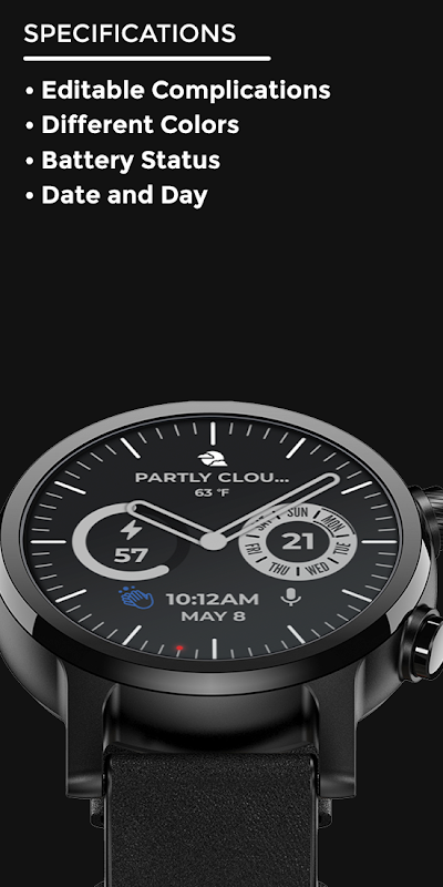 • Les styles et les complications peuvent être personnalisés dans les paramètres du cadran de la montre (appuyez longuement au milieu)