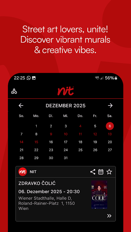 L'application permet aux organisations de publier facilement des événements et des entrées dans le calendrier central des événements. D'autre part, les utilisateurs ont la possibilité d'avoir un aperçu simple et rapide de tous les événements à venir en Autriche, en Allemagne, en Suisse et en Italie. Qu'il s'agisse d'un concert, d'une conférence, d'une activité bénévole ou d'un autre événement, « NIT » est l'espace que vous pouvez utiliser pour rejoindre le plus grand public possible.