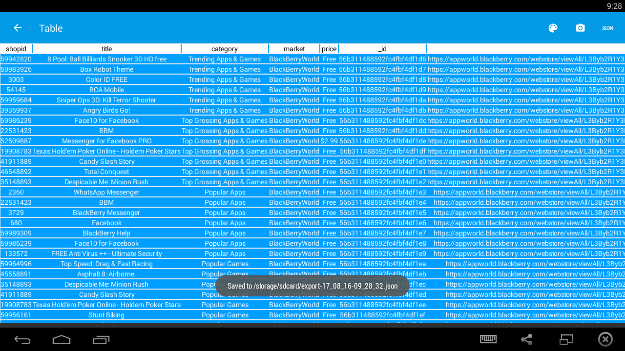 Utiliser l'outil d'exportation pour enregistrer des données sur la carte SD en JSON et PNG