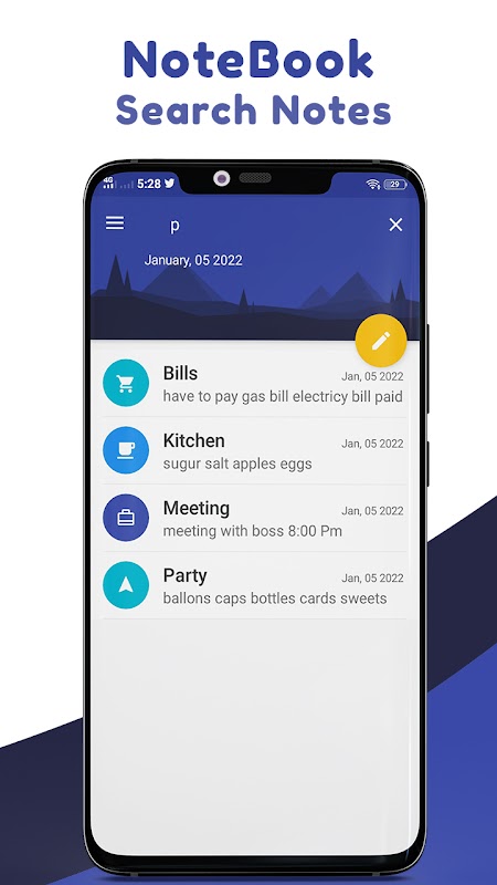 Il est temps de visualiser toutes vos notes et votre bloc-notes de différentes manières. Écrivez le bloc-notes avec style. Gérez facilement votre bloc-notes avec notre application. Épinglez le bloc-notes important que vous aimez et supprimez ceux qui ne vous sont d'aucune utilité. Téléchargez cette fantastique application de mémo et de bloc-notes et essayez-la.