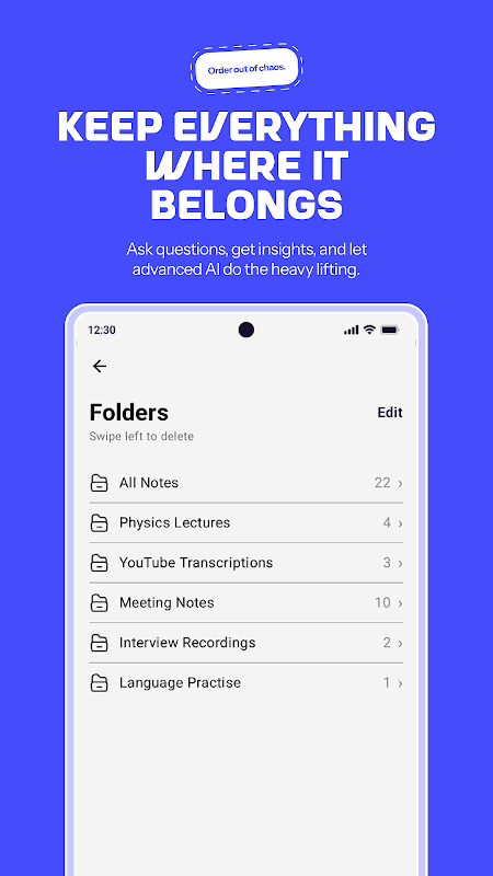 Notely Voice est l'application tout-en-un pour enregistrer, transcrire et organiser vos notes vocales, en mode mains libres. Que vous soyez en pleine séance de brainstorming, en train d'écrire dans votre journal, de travailler ou d'étudier, Notely Voice transforme instantanément vos idées en notes structurées et modifiables.