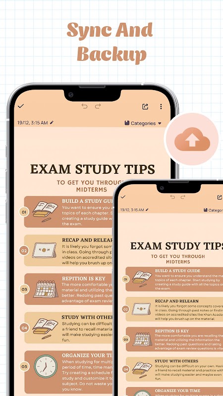 Sauvegardez toutes vos notes et listes sur le Cloud afin que vous puissiez être tranquille en sachant que vos données sont en sécurité et peuvent être restaurées à tout moment.