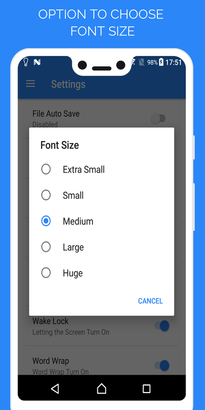 Bloc-notes - Éditeur de texte est l'application simple pour ouvrir, modifier, supprimer, renommer et enregistrer des fichiers texte vers et depuis la carte SD.