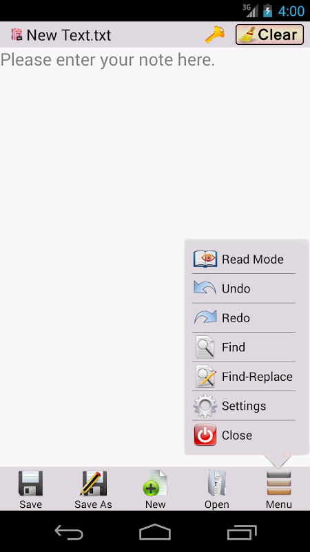 Notes2SD Text Editor is a complete android notepad. It directly saves your notes/text to SD card in txt format. Very useful for tacking regular notes without worrying about losing your text notes if something wrong happens with your phone or you simply uninstall the app. You can also transfer/copy your notes to PC, laptop or any digital device which supports txt files.