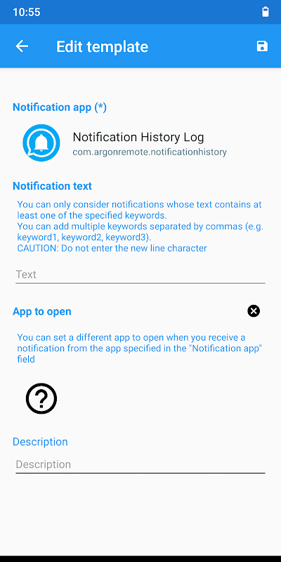Vous pouvez également définir des mots-clés pour ouvrir l'application uniquement si la notification les contient.