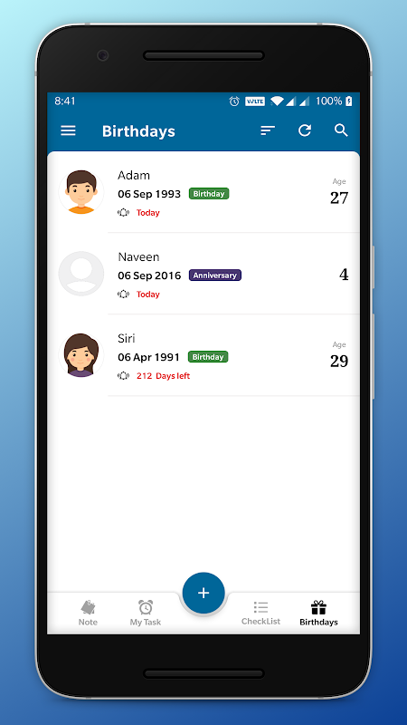 - L'application Notify Me récupère tous les événements d'anniversaire enregistrés dans le contact du téléphone et les rappelle via une notification.