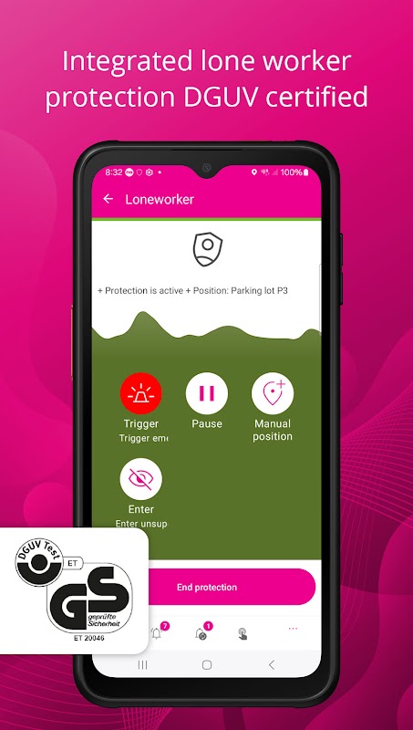 • Protection des travailleurs isolés, certifiée selon les directives de la règle DGUV 112-139, répond en outre aux exigences de la SUVA et de l'AUVA