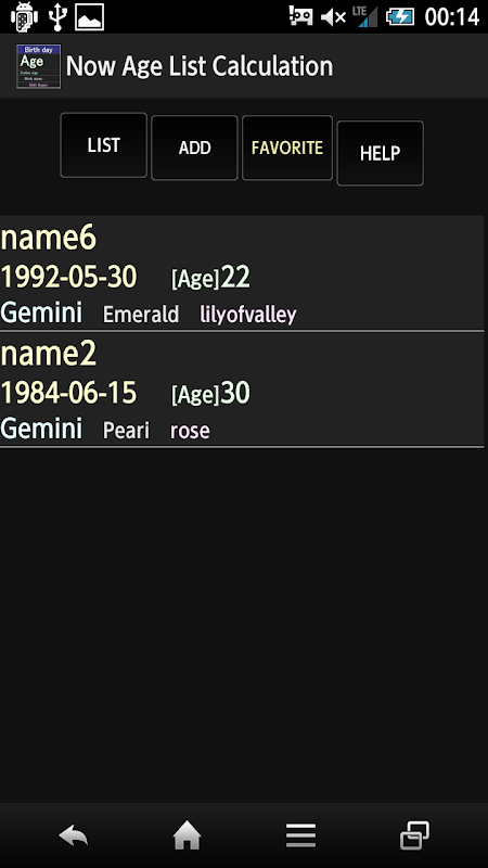 Update screen will be able to edit the name and birthday of Age data, and be able to delete Age data (Favorite data will also be deleted at the same time).
