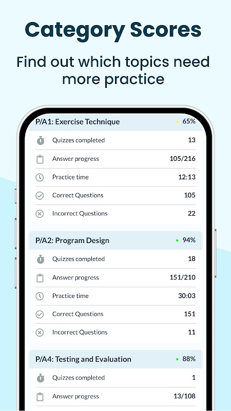 • Simulateur d'examen réaliste : tests blancs chronométrés reproduisant l'environnement d'examen NSCA CSCS.