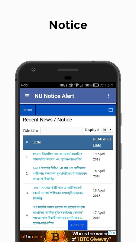 À propos de Nu Notice Alert-জাতীয় বিশ্ববিদ্যালয় নোটিশ এলার্ট
