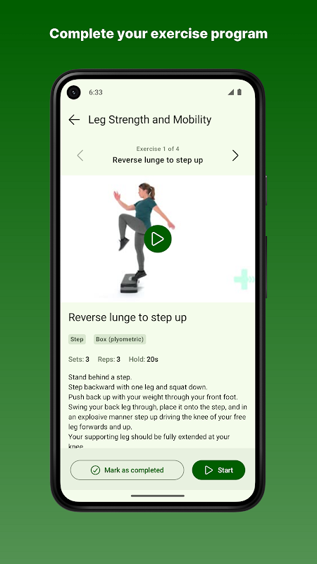 • Accès à des vidéos d'exercices de haute qualité qui vous ont été prescrites par votre physiothérapeute.