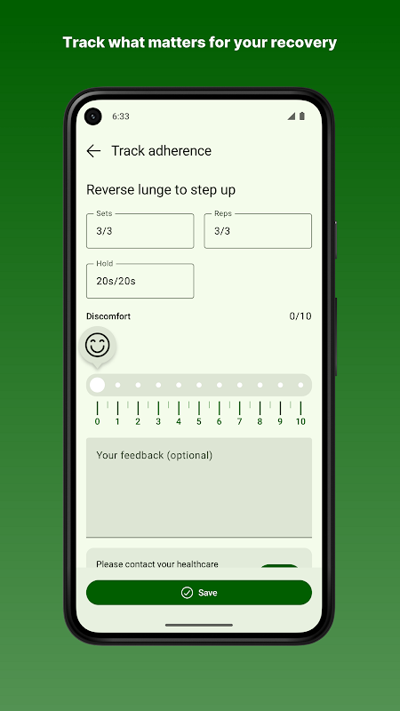 • Le suivi des progrès vous permet de faire savoir à votre physiothérapeute / psychothérapeute comment vous progressez.
