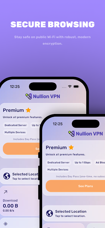 Protégez votre confidentialité avec Nullion VPN, un VPN rapide, sécurisé et sans journaux, conçu pour le streaming, les jeux et la navigation quotidienne. Connectez-vous en un clic, bloquez les publicités et les traqueurs, et profitez d'un serveur dédié jusqu'à 1 Gbit/s pour des performances optimales.