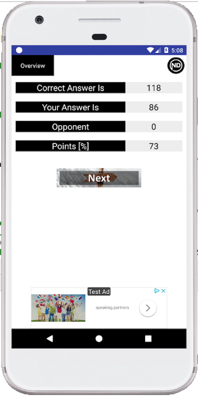 NumDuel is a quiz game in which there is no right or wrong. You don’t choose between different answer options; rather, you guess the answer to the question and get points depending how close you are to the correct answer. If this wouldn’t be fun enough, you play the game against your friends or random opponents, whoever you prefer. A very simple example question is: “What percentage is equivalent to three quarters?” If you guess 25 and the correct answer is 75, your score is 33. The game consists of five rounds, each with three questions per player, and you can choose questions from over 10 different categories, ranging from science to entertainment. The goal is to have a higher score than your opponent.
