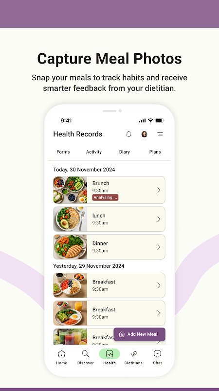 Partagez vos données de santé : Partagez facilement vos données de santé avec votre diététicien pour recevoir des recommandations personnalisées et atteindre vos objectifs bien-être. Notre application vous permet de partager des informations sur votre niveau d'activité, vos mensurations, votre nutrition et vos signes vitaux, offrant ainsi à votre diététicien une vision globale de votre santé.