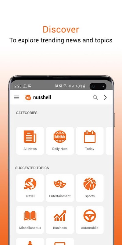 Avec Nutshell, il vous suffit de balayer de haut en bas pour lire les détails essentiels sur à peu près tout: les actualités locales, les tendances, les actualités internationales, les sports, les divertissements, les affaires, etc.