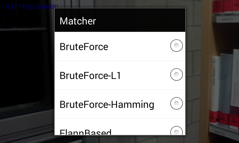 Mit OnTouch wählt man das Objekt aus das erkannt werden soll. Das Programm benötigt OpenCV Manager das in Google Play oder auf opencv.org heruntergeladen werden kann.